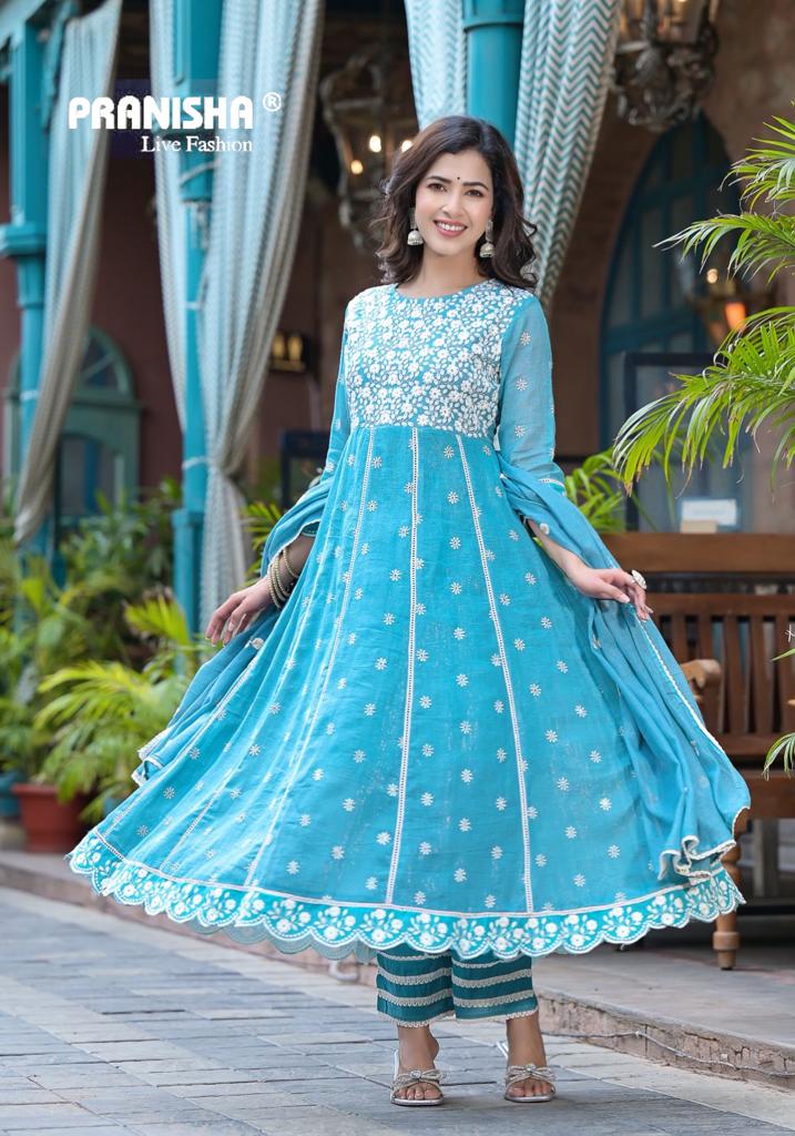 Anarkali Kurta Set Embroidery Work Colour Blue Cotton