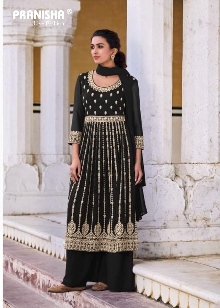 Anarkali Kurta Set V Neck Hand Work Black Colour