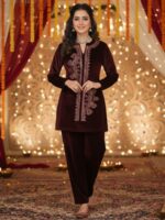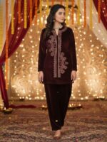 Be the first to review “Pranisha Women Maroon Velvet Embroidered Kurta Set for Festive & Party Wear” Cancel reply