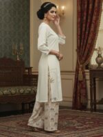 Be the first to review “Pranisha Women Off-White V-Neck Kurta with Printed Palazzo Pants” Cancel reply