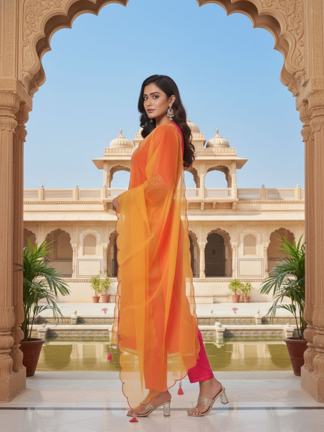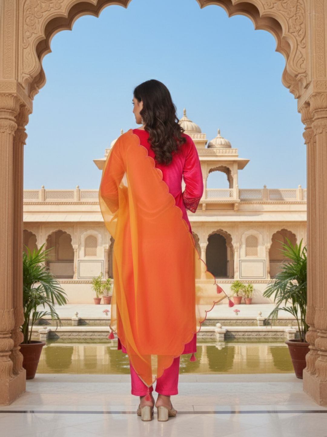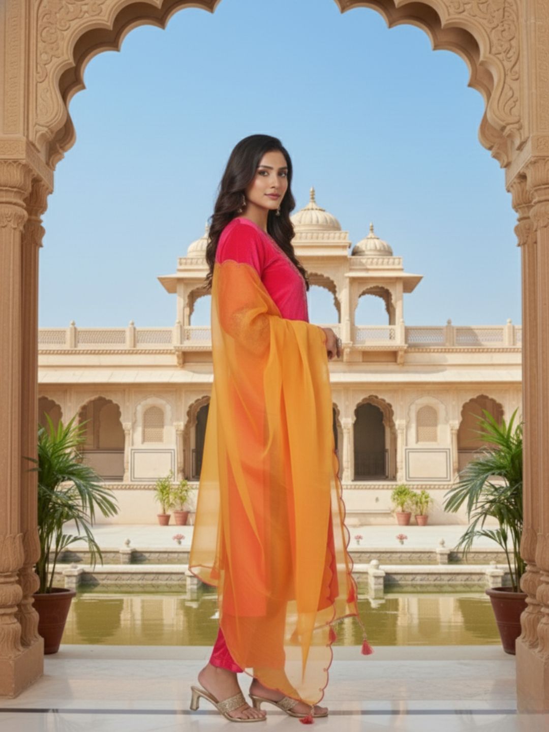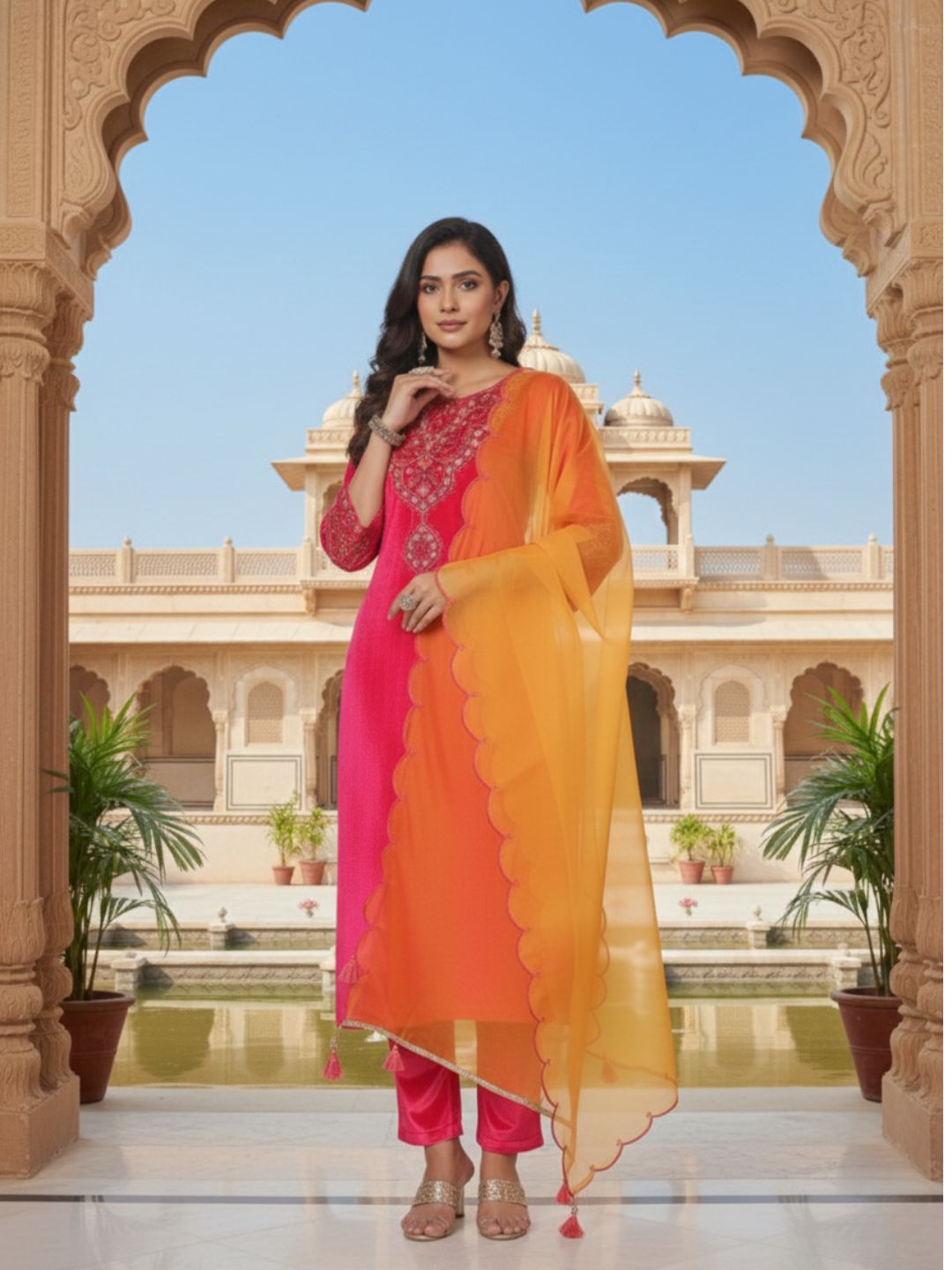 Be the first to review “Pranisha Women Pink Embroidered Velvet Kurta with Pants and Pink Dupatta” Cancel reply