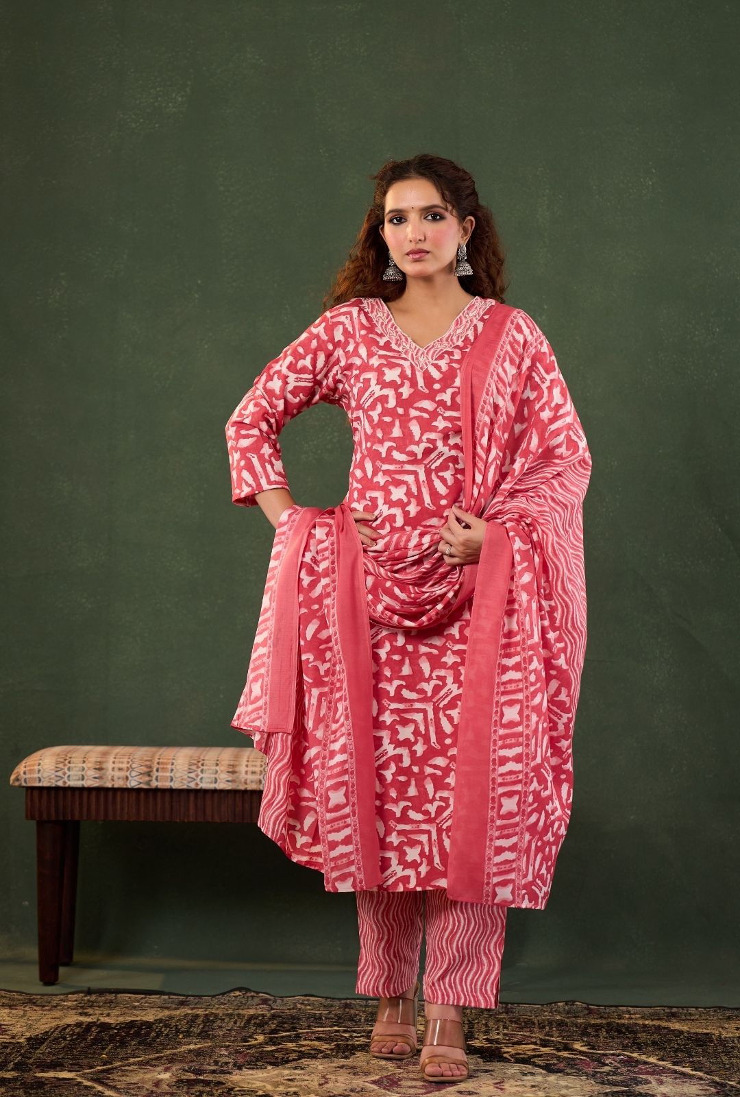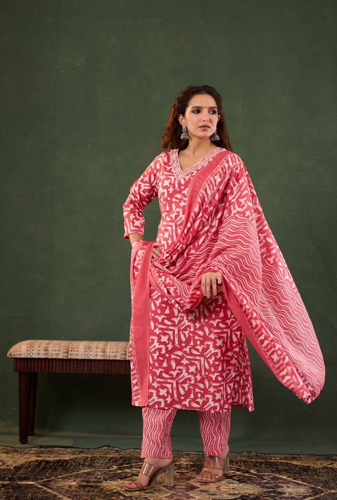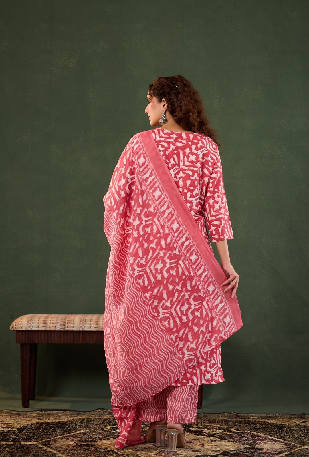 Pink Abstract Printed Cotton Suit Set, crafted to offer comfort with effortless elegance.