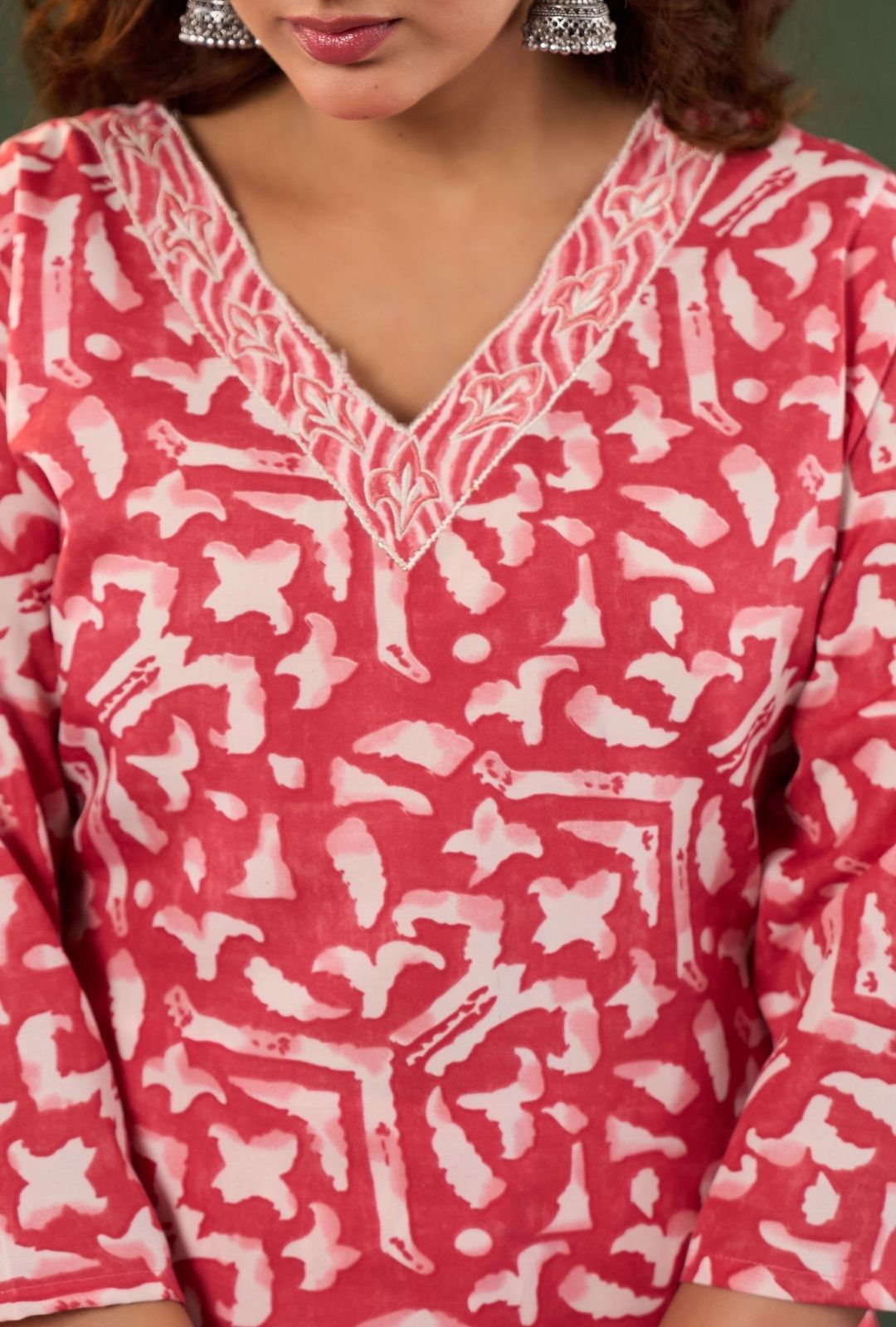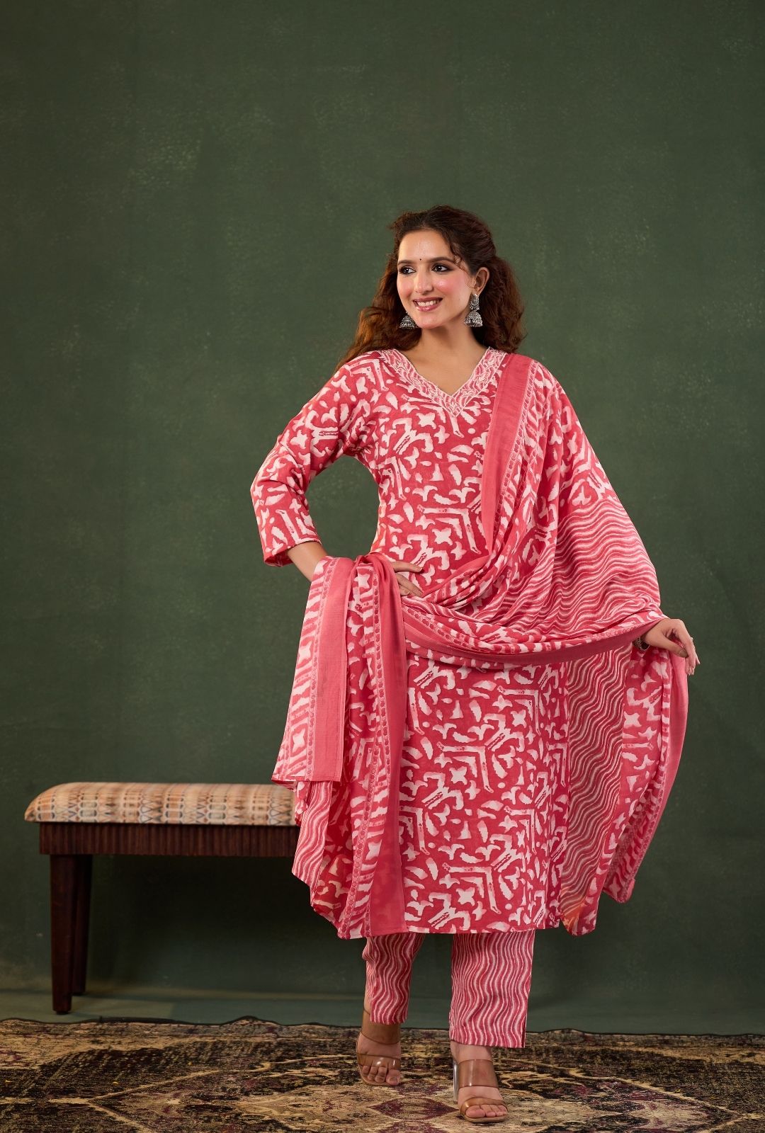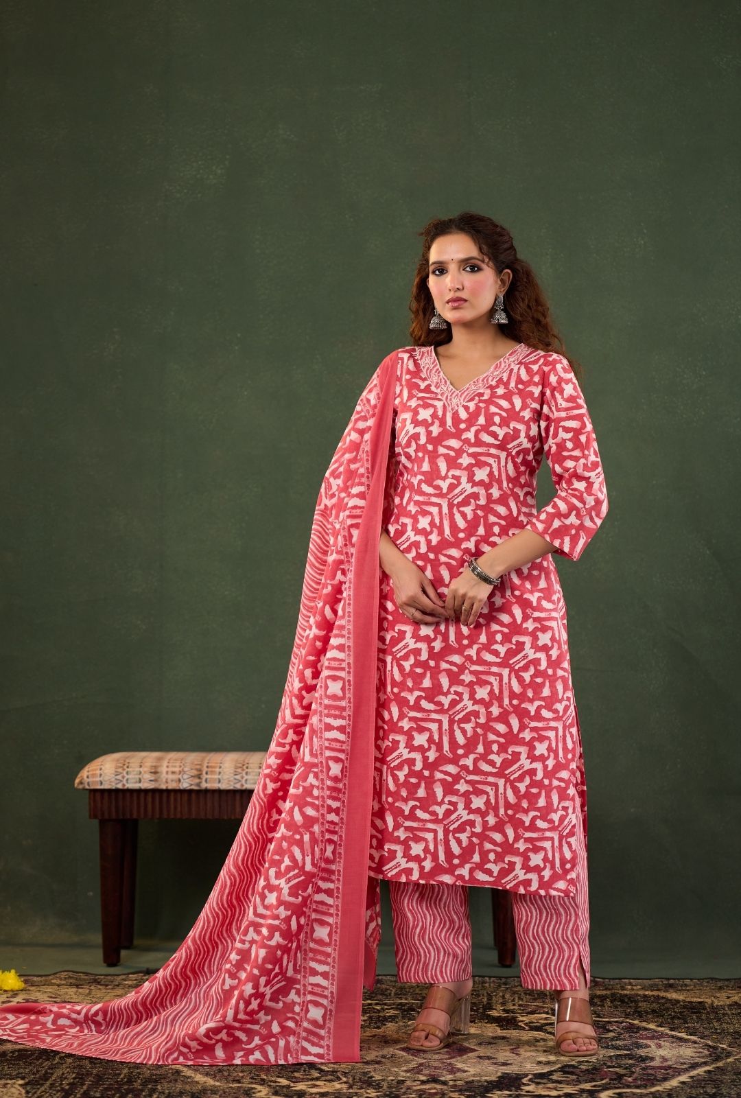 Pink Abstract Printed Cotton Suit Set, crafted to offer comfort with effortless elegance.
