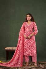 Be the first to review “Pranisha Women Pink Printed Cotton Straight Kurta Set with Dupatta” Cancel reply