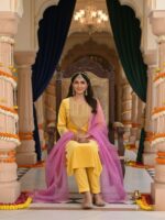 Be the first to review “Pranisha Women Yellow Embroidered Velvet Kurta with Pants and Orange Dupatta” Cancel reply
